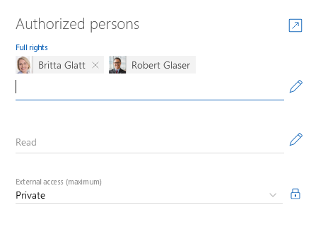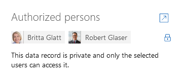 The Authorized person element contains information on the users who are allowed to access the open data record.