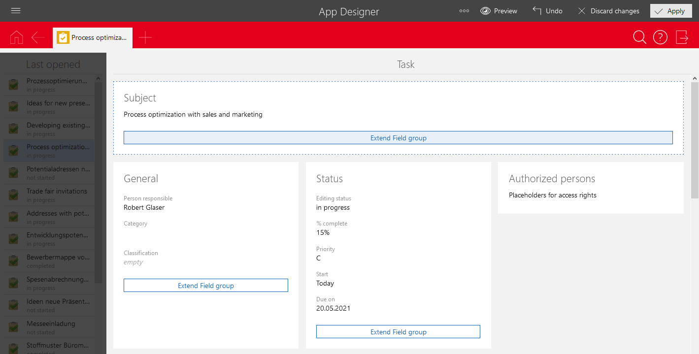 - The changes are saved in the context of the current session. If you have not yet published the changes and have not logged off from SmartWe, or deactivated the App Designer, then your changes will be lost.