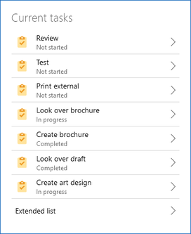 Additionally, you can open the extended list if this has not be blocked in the App Designer. The extended list contains all the list data records and can also include view functions as well as an action menu. Which functions are available depends on the type of list.