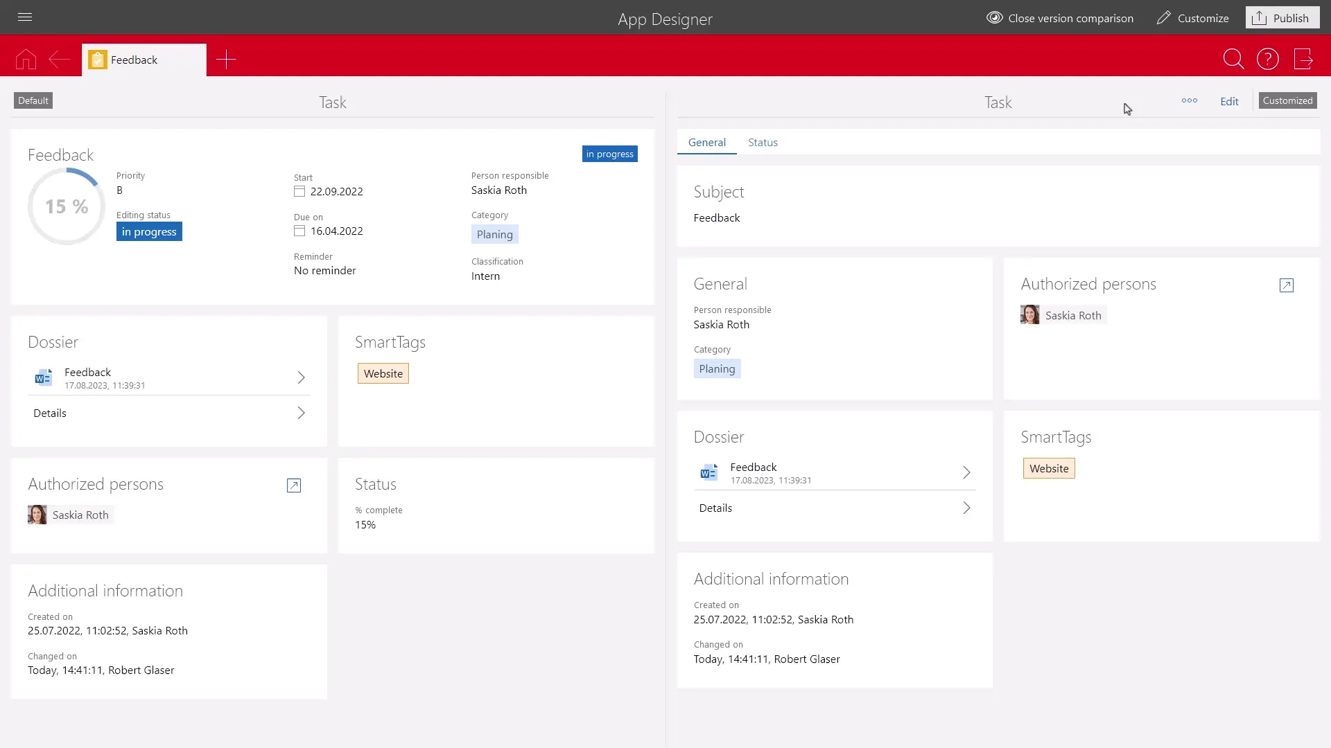 - When you apply and publish the changes with the App Designer after the automatic update, the respective form is automatically removed from the list of forms to be checked.